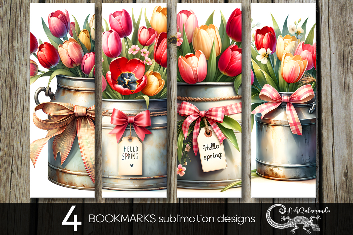 Hello spring | 4 flowers bookmarks sublimation designs PL2