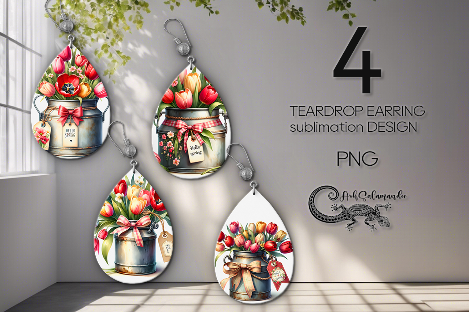 Spring Flowers | 4 Sublimation Teardrop Earring designs P2