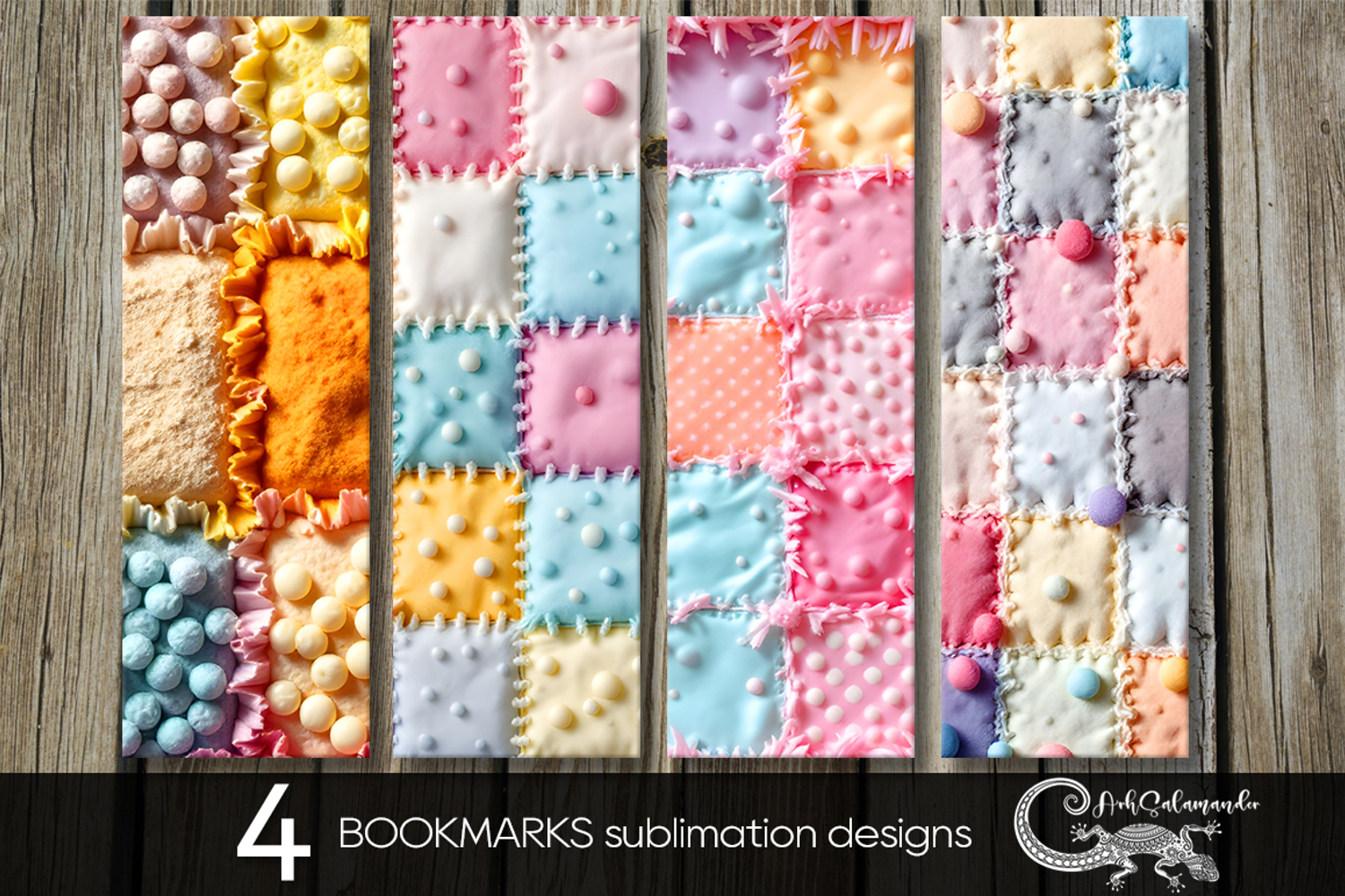 Candy patchwork | 4 vintage bookmarks sublimation designs