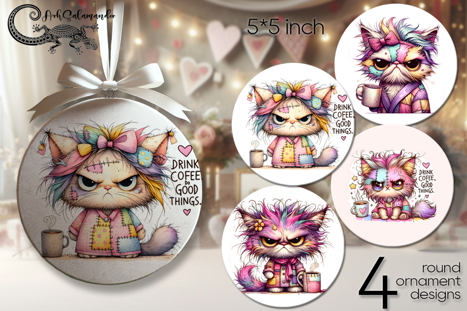 Similar Design Products to Good Morning | 4 coffee round ornaments sublimation P2
