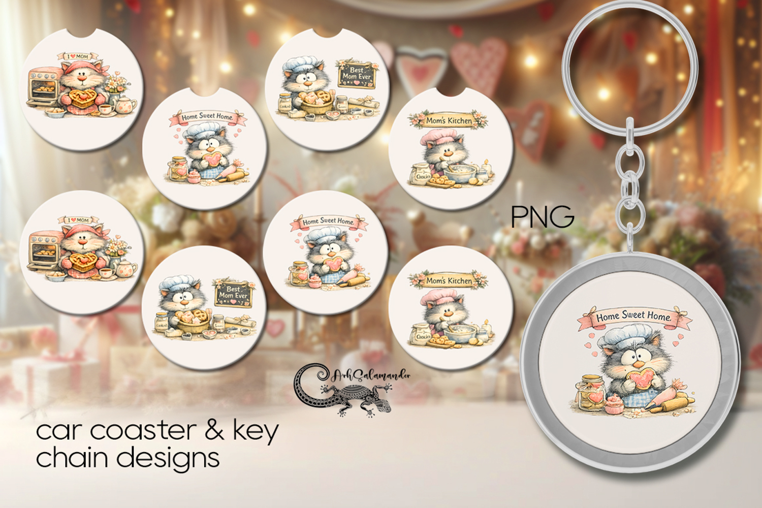 Mom's cat | mothers day 4 Car coaster & 4 key chain designs example image 1