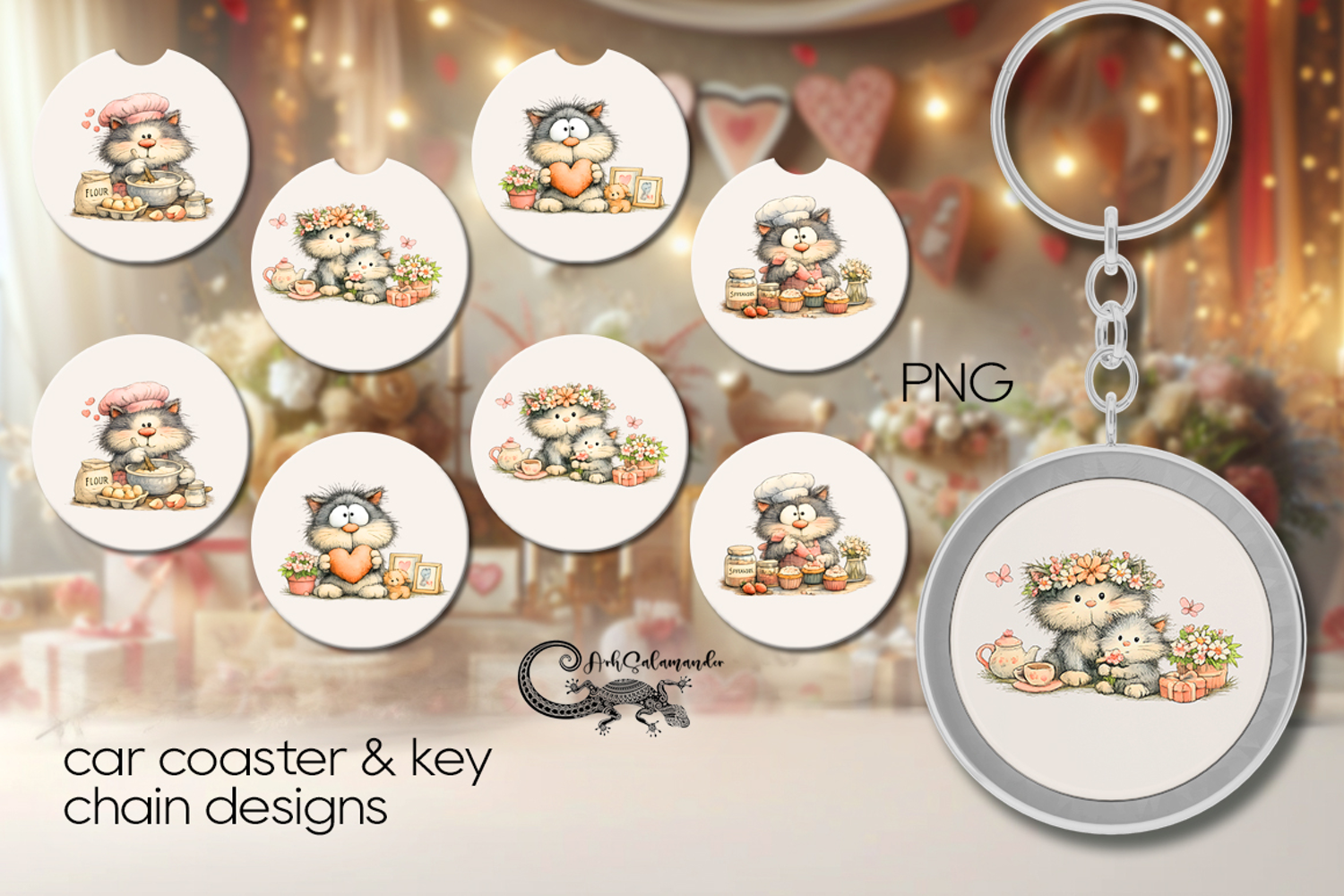 Mom's cat | 4 Car coaster & 4 key chain designs P example image 1