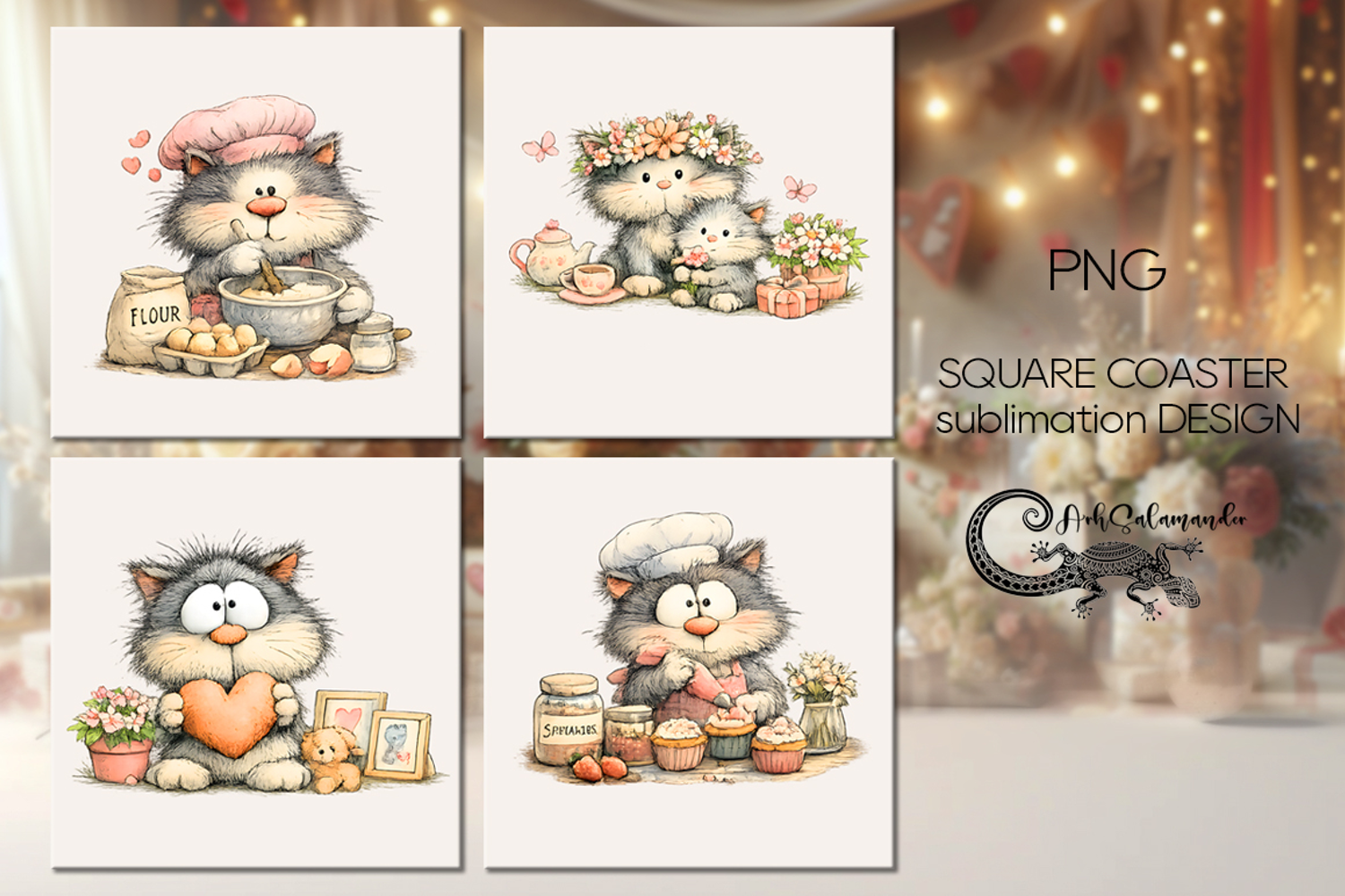 Here is set of 4 square coaster designs, PNG.
