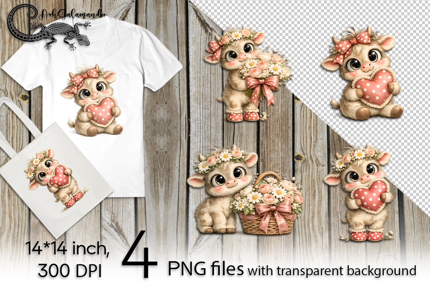 Funny cow | 4 cute PNG Sublimation designs