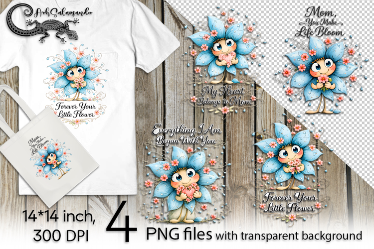 Mothers Day flower | 4 cute PNG Sublimation designs