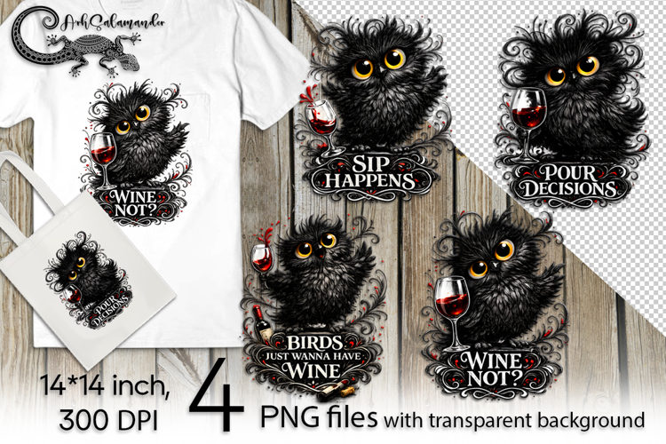 Similar Design Products to Funny black bird & wine | 4 PNG Sublimation designs