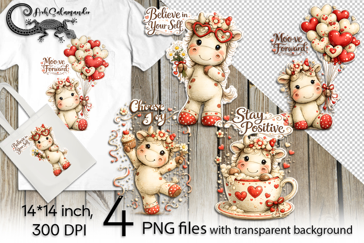 Inspiring inscription cow | 4 positive PNG designs example image 1