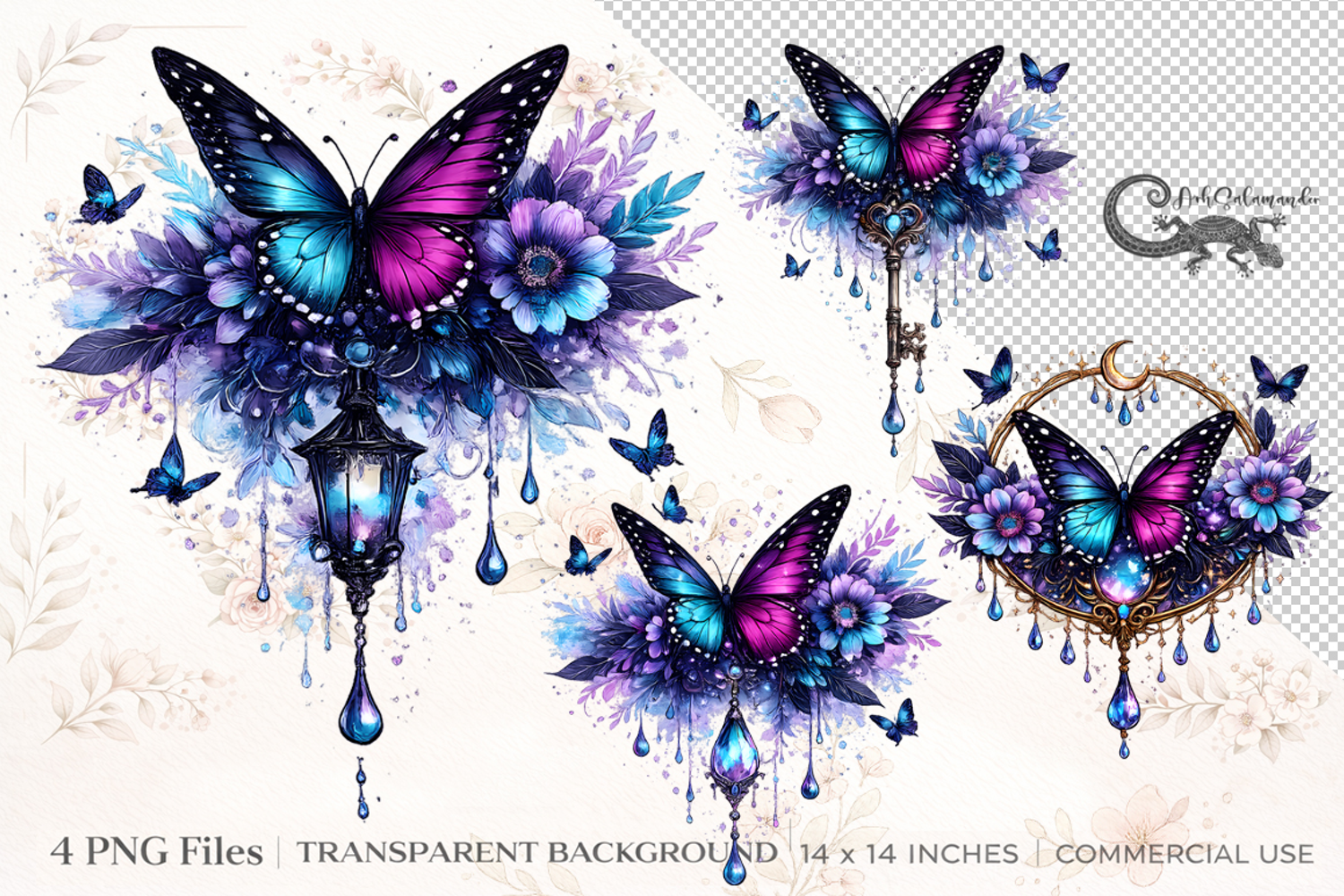 Mystic Butterfly Clipart Bundle | 4 PNG sublimation designs
