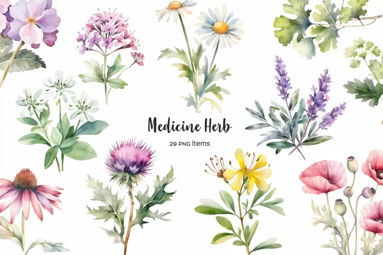 Similar Design Products to Watercolor medicine herbs clipart. Herb flower PNG