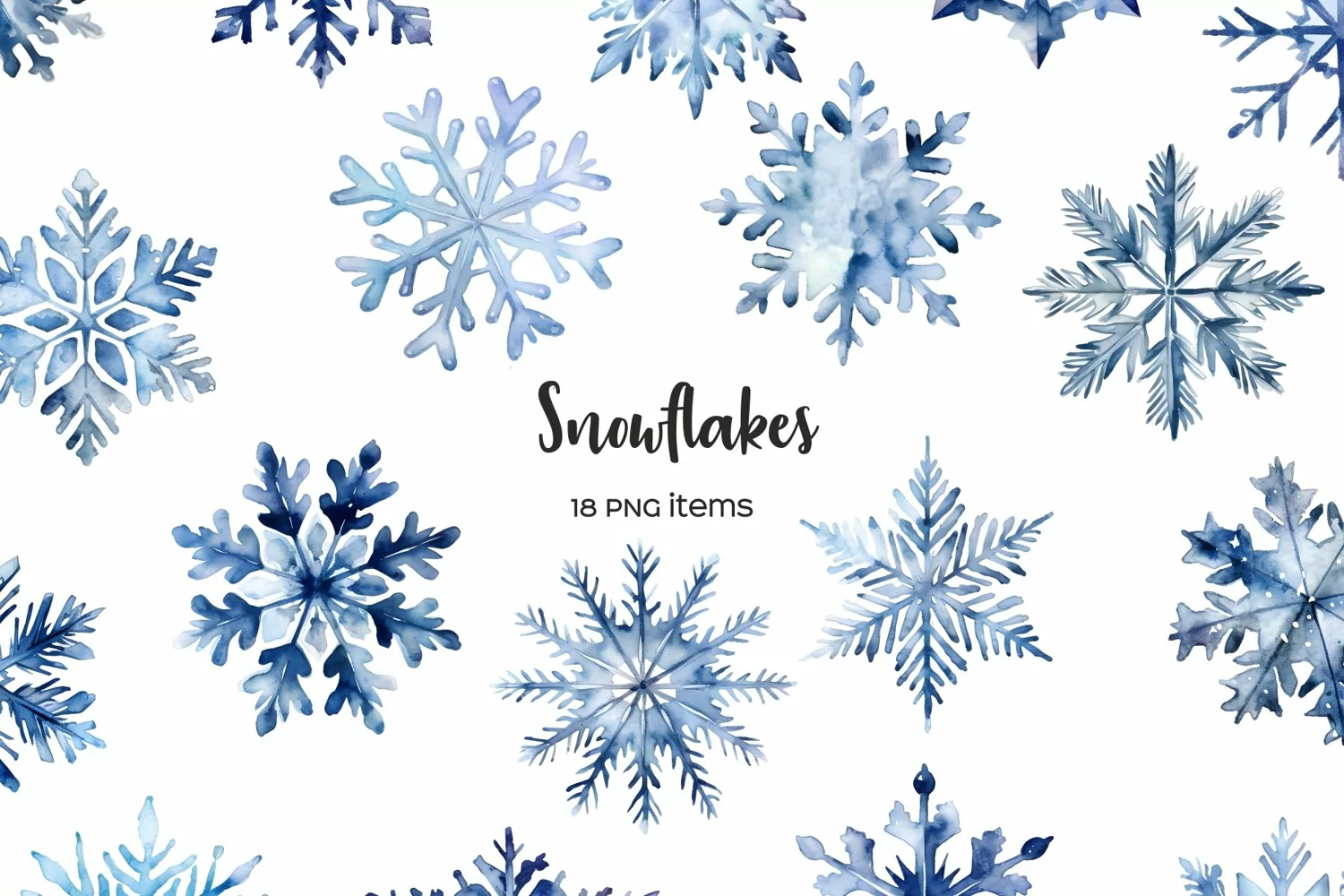 Watercolor snowflakes clipart includes 18 PNG Winter holiday snowflakes.
