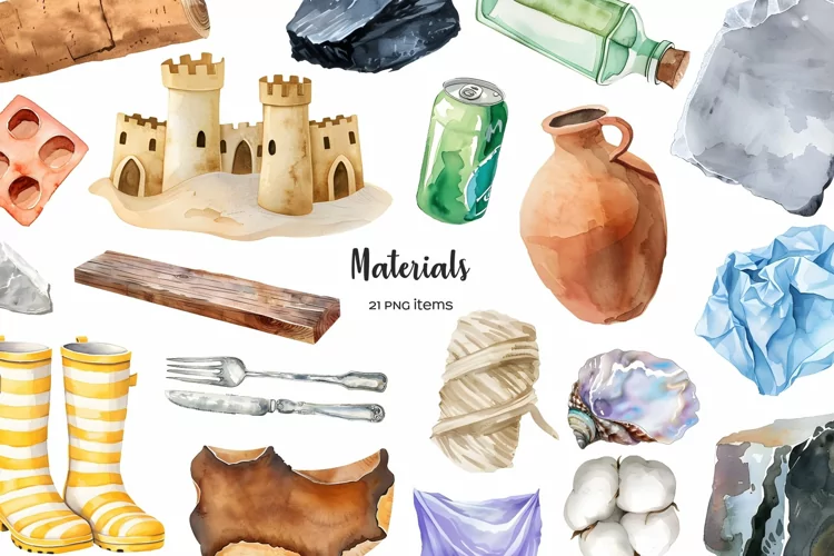 Watercolor materials clipart. Types of material set 21 PNG. example image 1