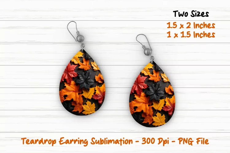 3D Fall Leaves Teardrop Earring Design | Teardrop Earring | Earring Sublimation