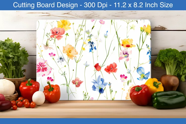 Watercolor flowers cutting board, Cutting board PNG, Cutting board designs, Cutting board sublimation,