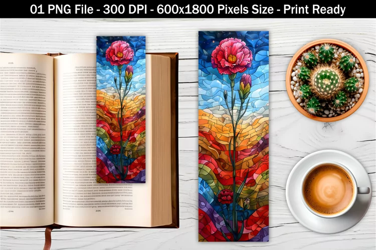 Whimsical art carnation flower bookmark, Bookmark Sublimation, Bookmark PNG, Bookmarks for Sublimation