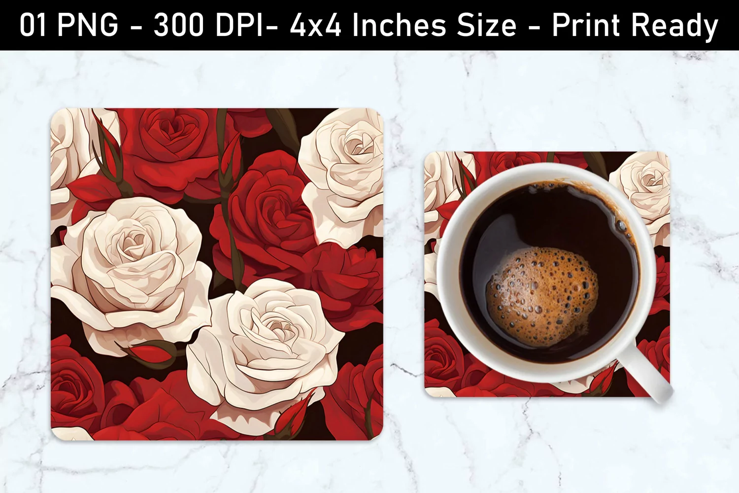 Rose Floral Pattern Square Coaster | Square Coaster Design example image 1