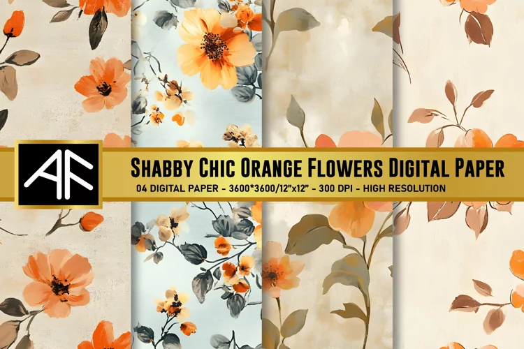 Similar Design Products to Shabby Chic Orange Flower Digital Paper