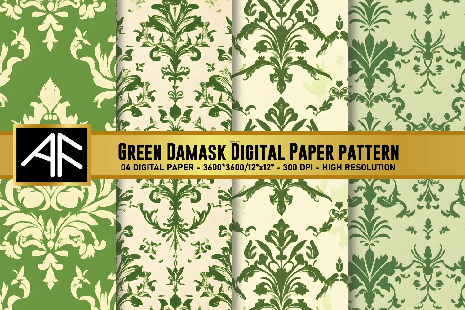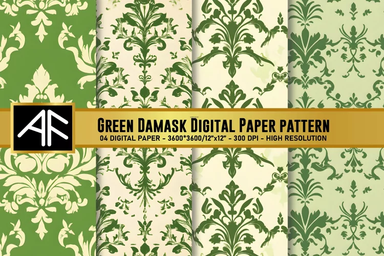 Green Damask Digital Paper Patterns
