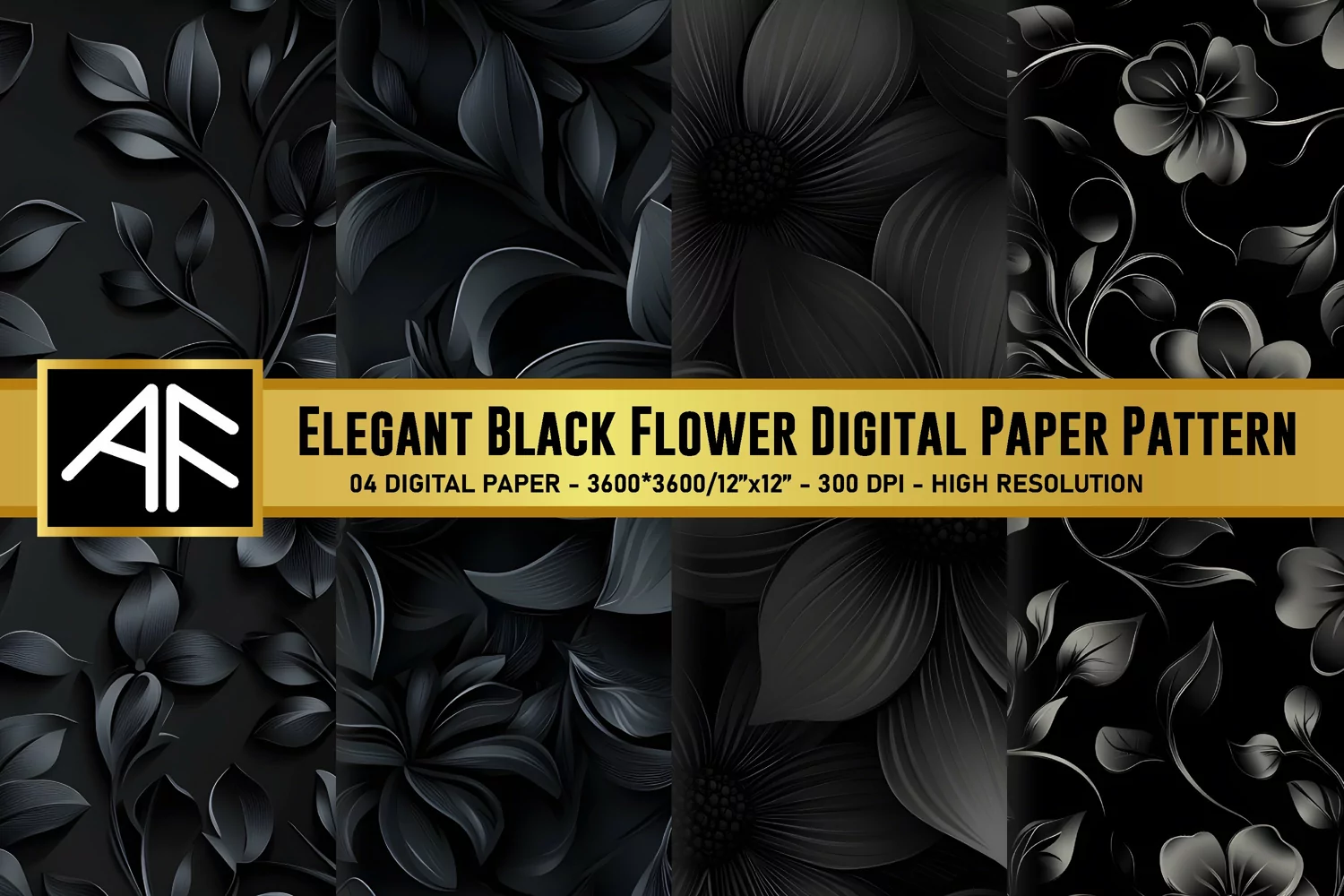 Similar Design Products to Elegant Black Flower Digital Paper Pattern