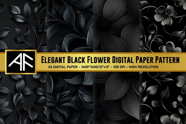 Digital Paper Flower Pattern Floral Pattern Scrapbook Paper Printable Papers Flower Digital Paper Black Flower Pattern Elegant Flower Pattern Elegant Black Flower Digital Paper Elegant Black Flower Pattern