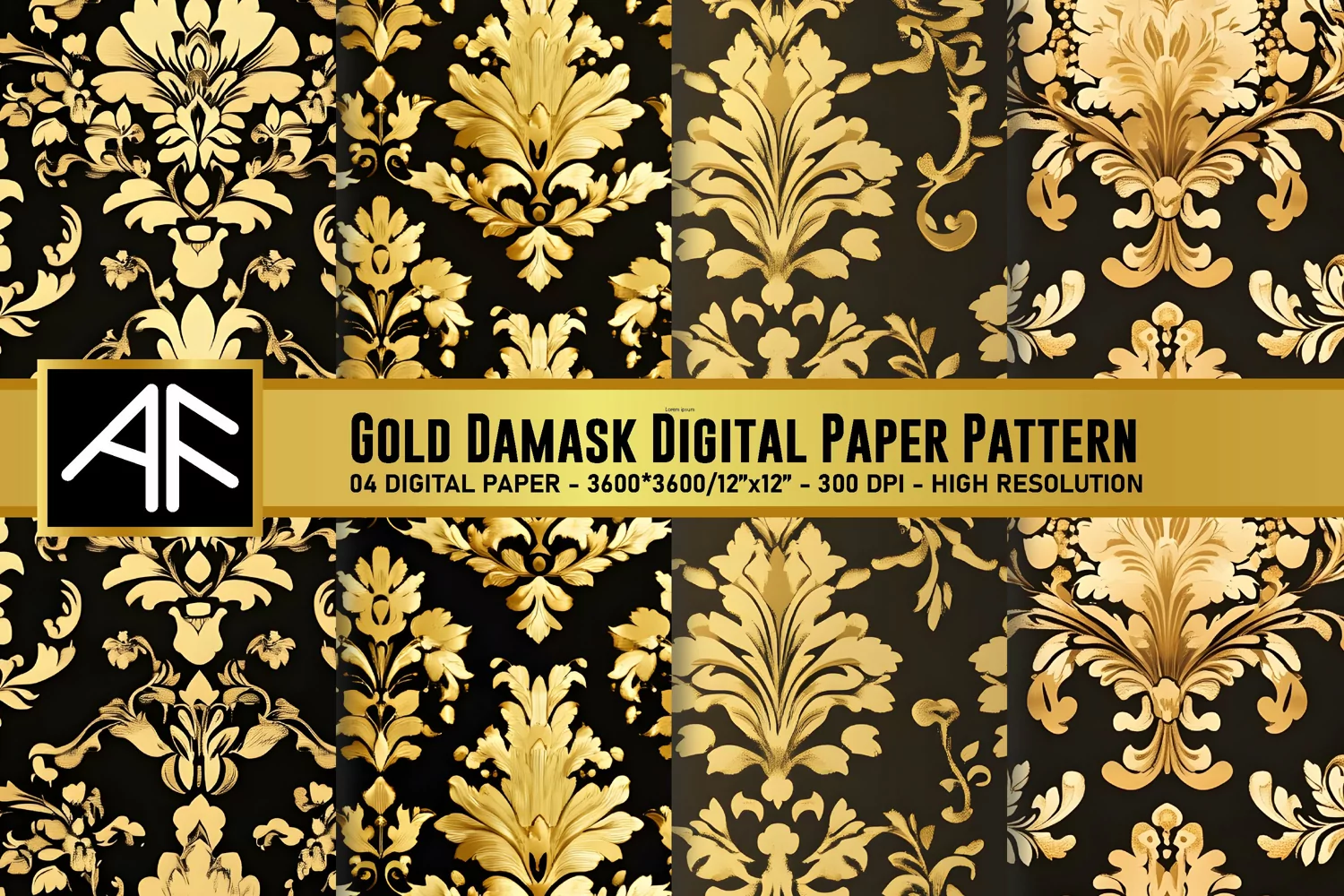 Gold Damask Digital Paper Patterns