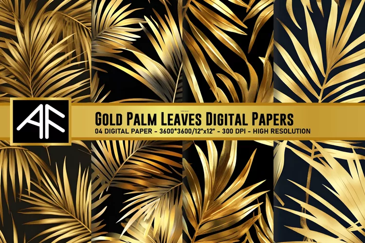 Gold Palm Leaves Digital Paper Patterns