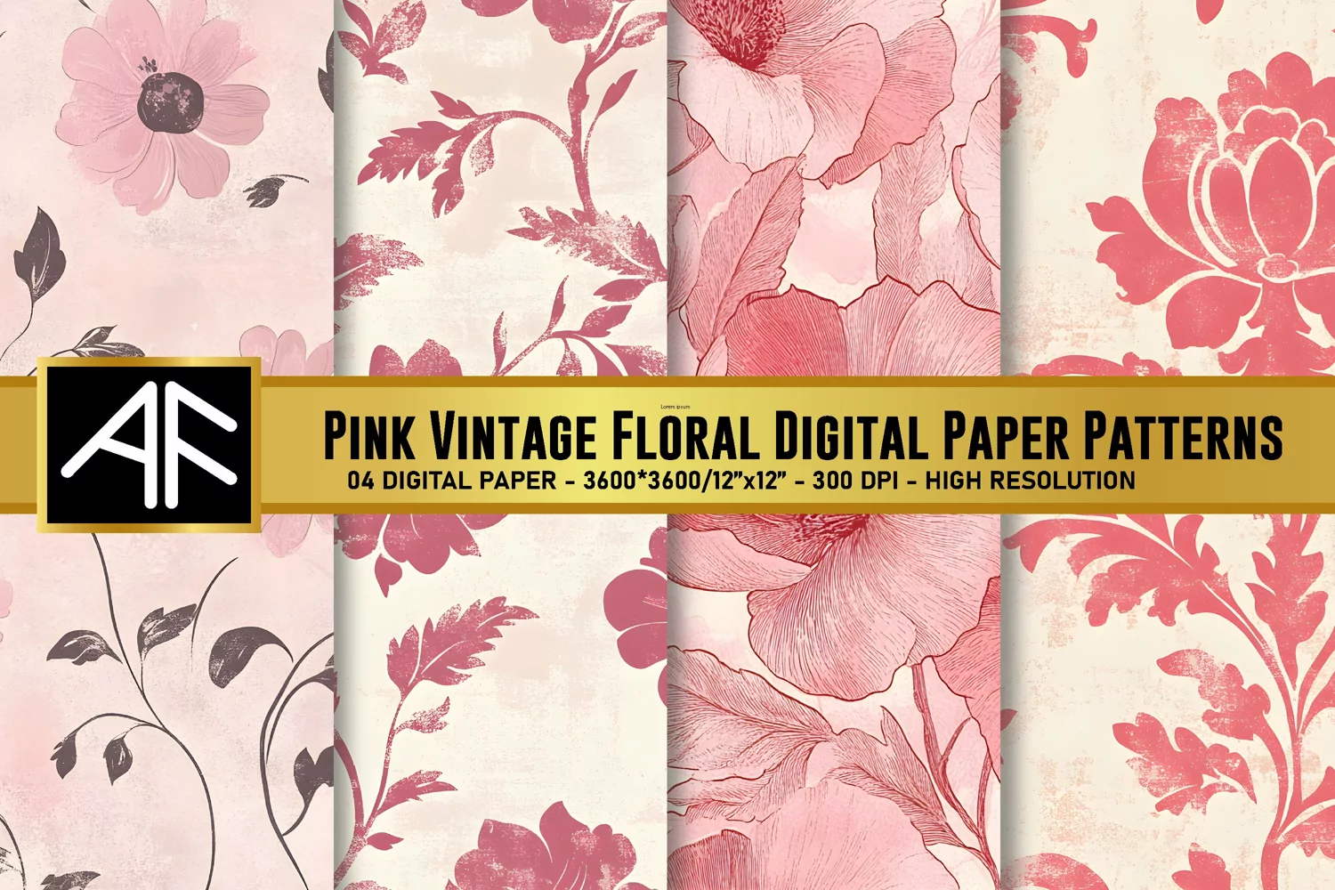 Digital Paper Floral Digital Paper Flower Pattern Floral Pattern Scrapbook Paper Floral Background Vintage Floral Pattern Vintage Floral Digital Paper Vintage Floral Papers Pink Vintage Floral Digital Paper