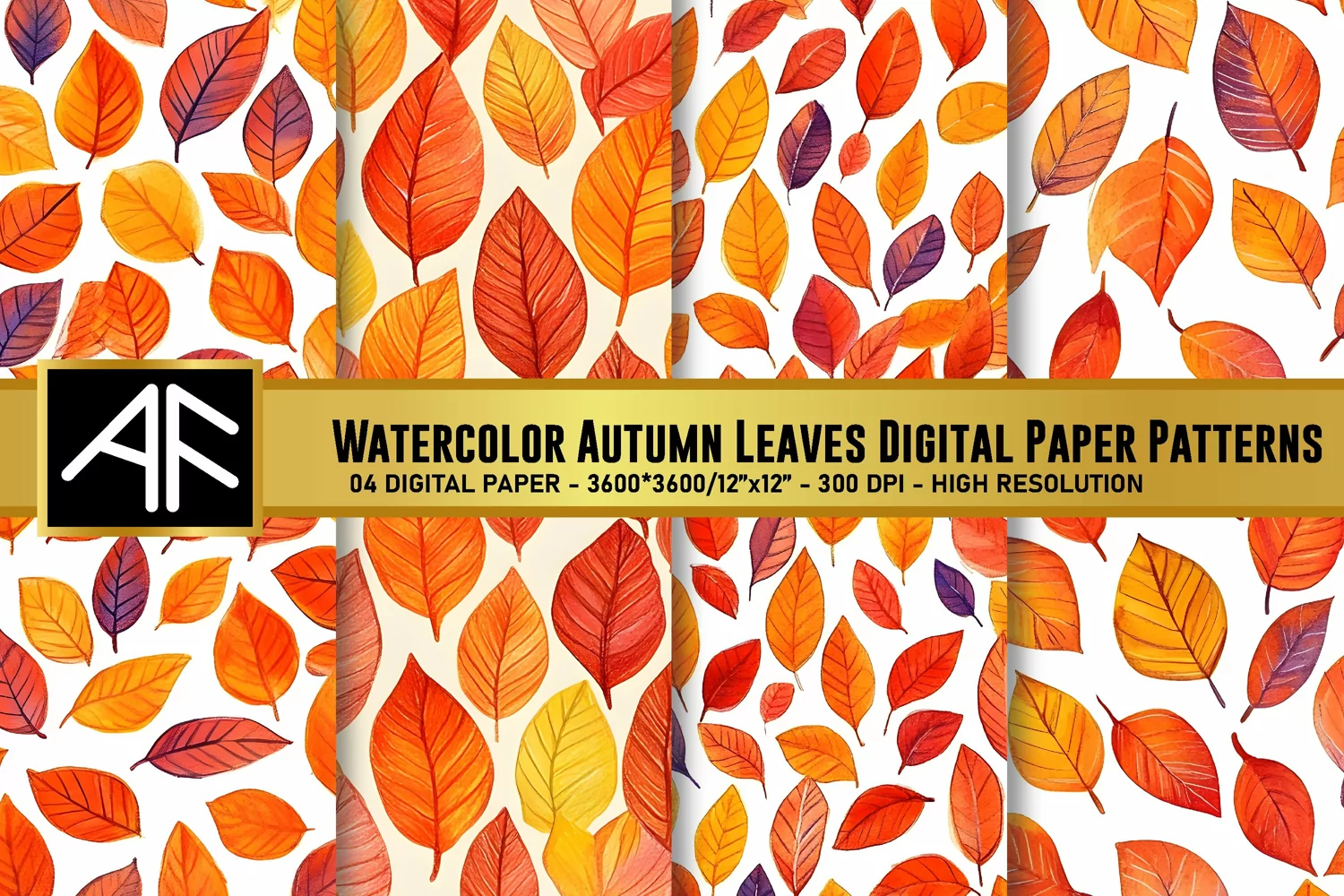 Watercolor Autumn Leaves Digital Paper Patterns example image 1
