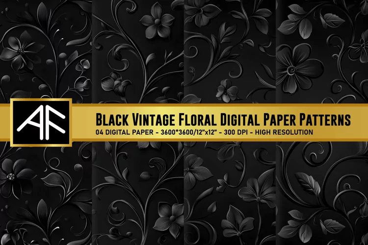 Similar Design Products to Black Floral Digital Paper Patterns