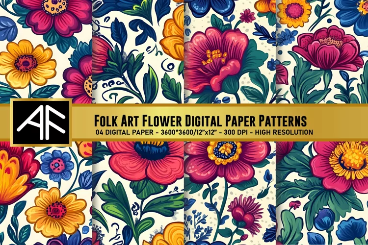 Folk Art Flower Digital Paper Patterns