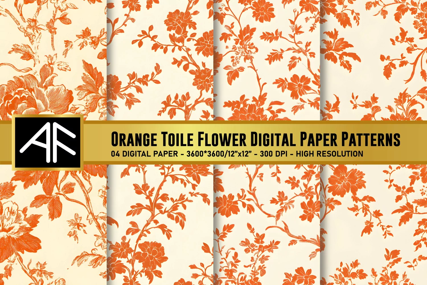 Similar Design Products to Orange Toile Flower Digital Paper Patterns