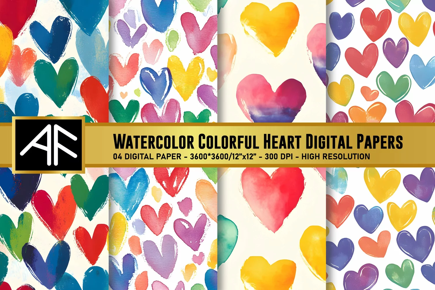 Similar Design Products to Watercolor Colorful Heart Digital Paper Patterns