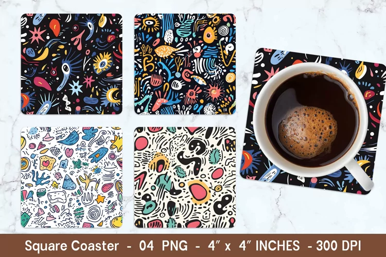 Doodle Square Coasters, Square Coaster Sublimation, Square Coaster PNG