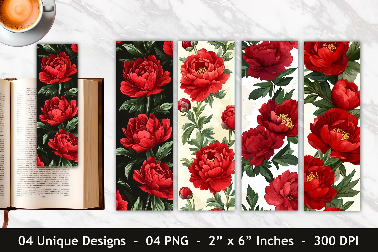Red Peony Flowers Bookmark | Bookmark Sublimation example image 1