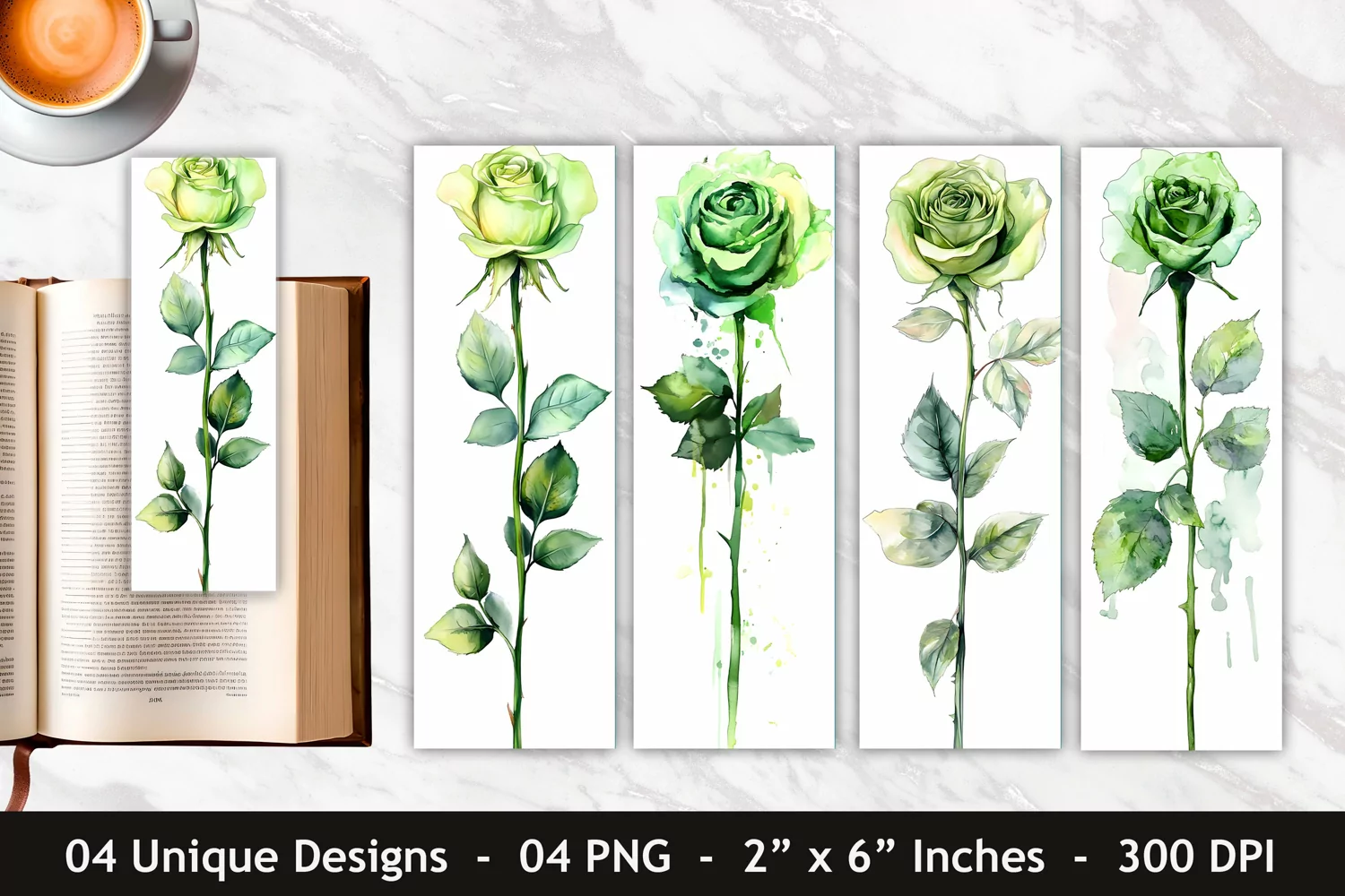 Watercolor Green Rose Bookmark | Bookmark Sublimation