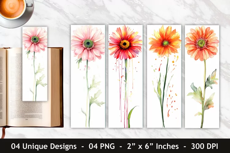 Bookmark Book Bookmark Printable Bookmarks Bookmark Png Bookmark Designs Flower Bookmark Bookmark Sublimation Watercolor Flower Bookmark Gerbera Flower Sublimation Gerbera Flower Bookmark