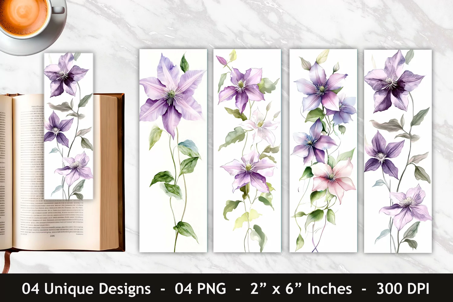 Similar Design Products to Watercolor Clematis Flower Bookmark | Bookmark Sublimation