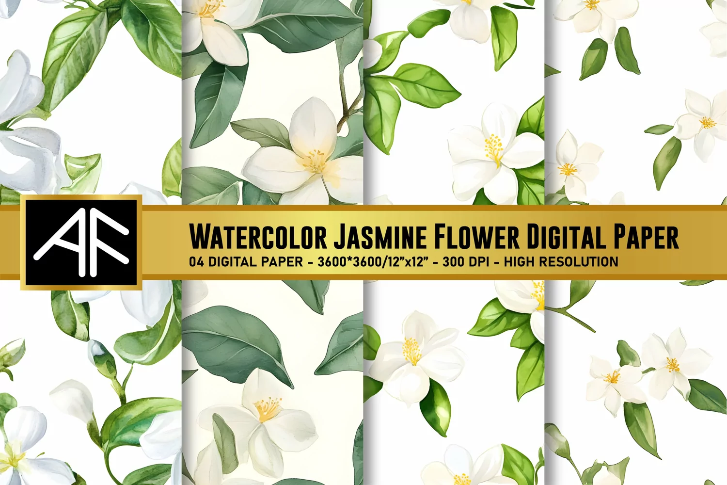Watercolor Jasmine Flower Digital Paper