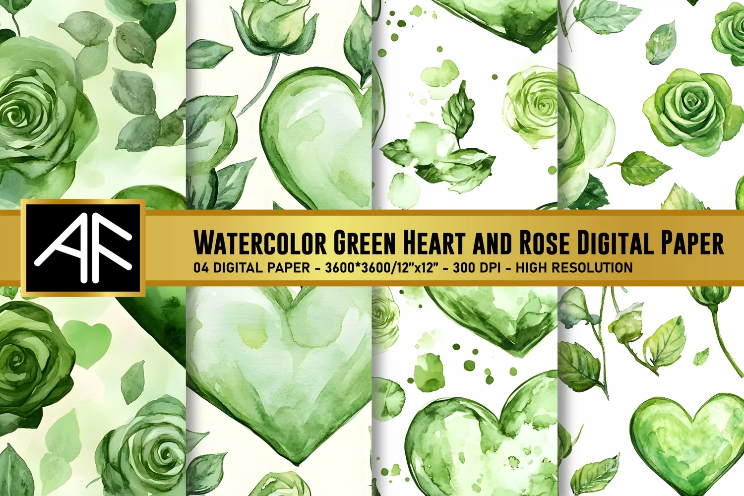 Similar Design Products to Watercolor Green Heart and Rose Digital Paper