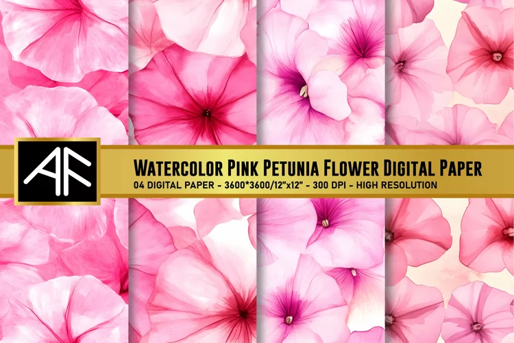 Similar Design Products to Watercolor Pink Petunia Flower Digital Paper