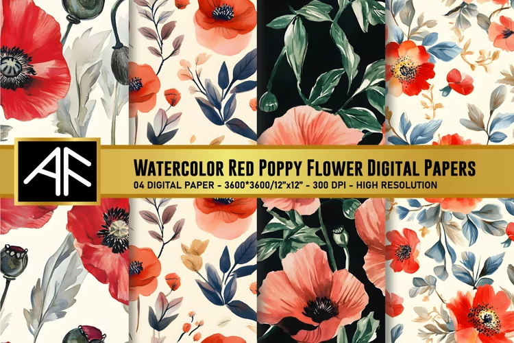 Similar Design Products to Watercolor Red Poppy Flower Digital Papers