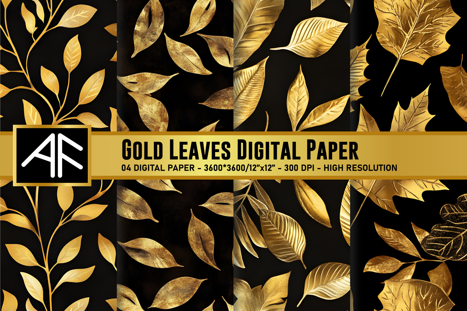 Gold Leaves Digital Paper | Gold Leaves Pattern | Scrapbook paper | Digital paper