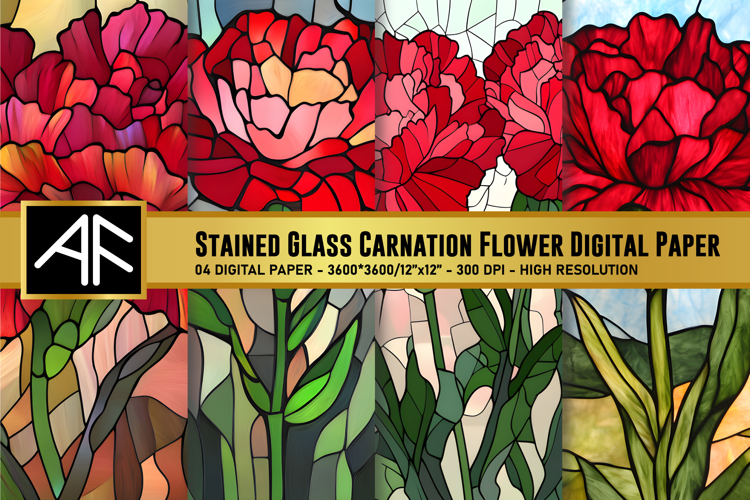 Similar Design Products to Stained Glass Carnation Flower Digital Paper