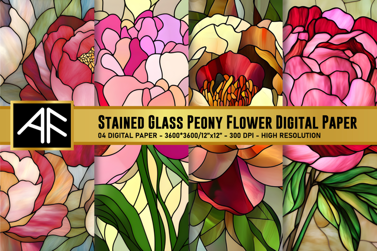 Similar Design Products to Stained Glass Peony Flower Digital Paper