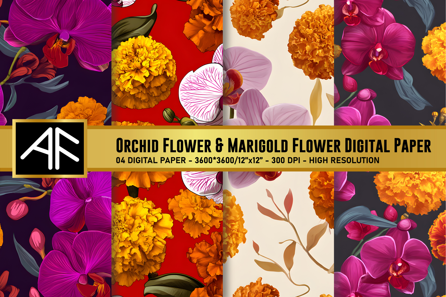 Digital Paper Flower Pattern Floral Pattern Scrapbook Paper Printable Papers Flower Digital Paper Orchid Flower Pattern Marigold Flower Pattern Orchid Flower Digital Paper Marigold Flower Digital Paper