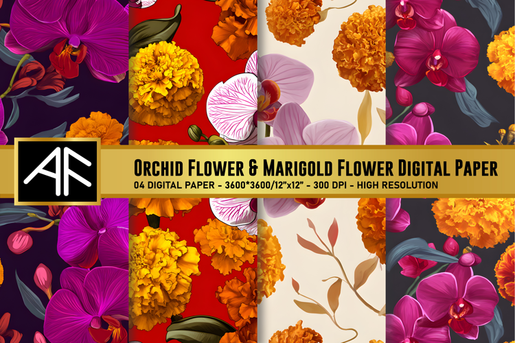 Orchid & Marigold Flower Digital Paper