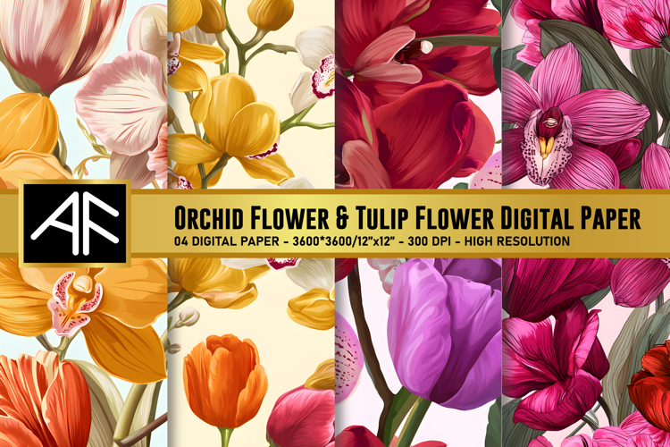 Orchid & Tulip Flower Digital Paper