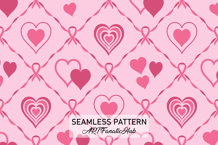 Breast cancer awareness pink ribbon and heart seamless pattern, Pink ribbon digital paper, Breast cancer digital paper