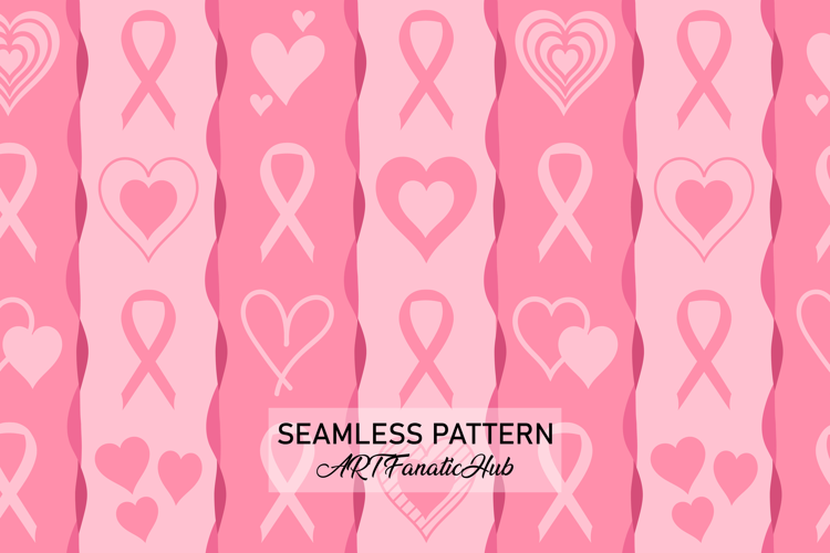 Breast cancer awareness pink ribbon and heart seamless pattern, Pink ribbon digital paper, Breast cancer digital paper