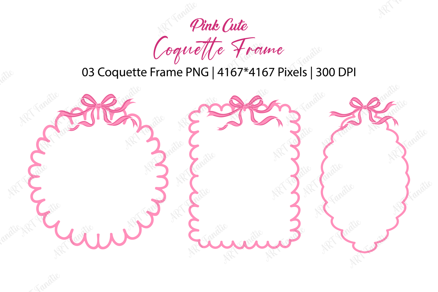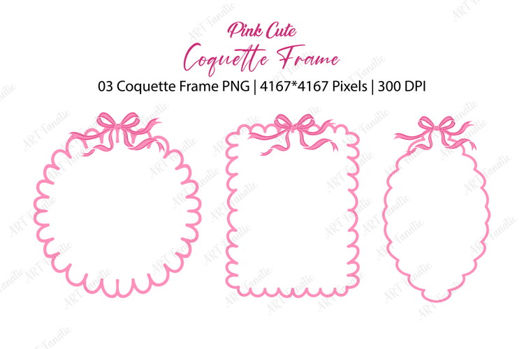Pink Cute Coquette Frame Bundle PNG. These Cute Coquette Frame is hand drawn with love and used Pink GIrly theme colors.