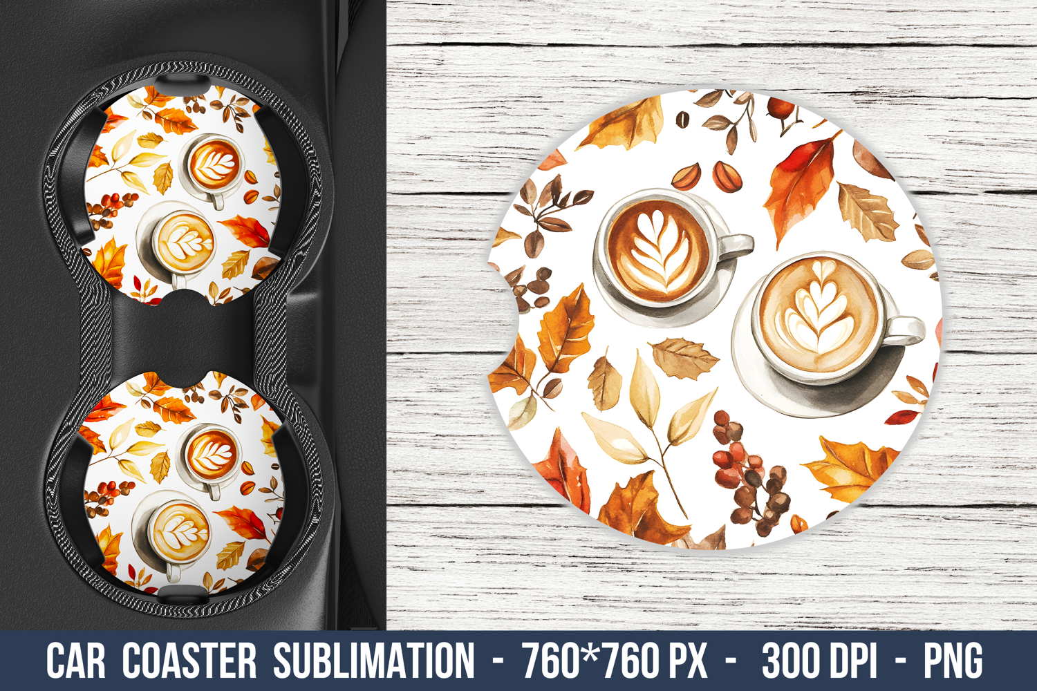 Watercolor Fall Coffee Car coaster | Car Coaster Sublimation example image 1